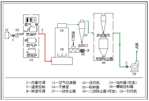 該系列設(shè)備是總結(jié)了流化床、熱破碎、旋流和分級技術(shù)的基礎(chǔ)上,開發(fā)、設(shè)計(jì)的一種熱效率高、適用范圍廣的新型干燥設(shè)備。